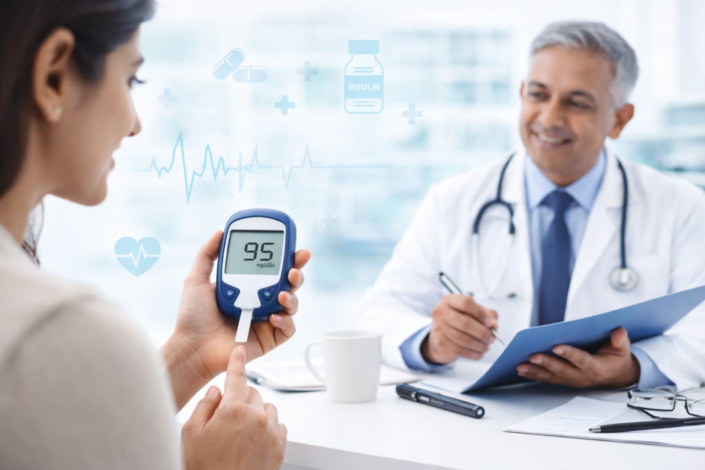 Diabetes is a chronic metabolic condition that affects the body’s ability to regulate blood sugar levels. At Novus Multispeciality Clinic, we provide comprehensive diabetes care including early diagnosis, blood sugar monitoring, medication management and lifestyle counselling.
