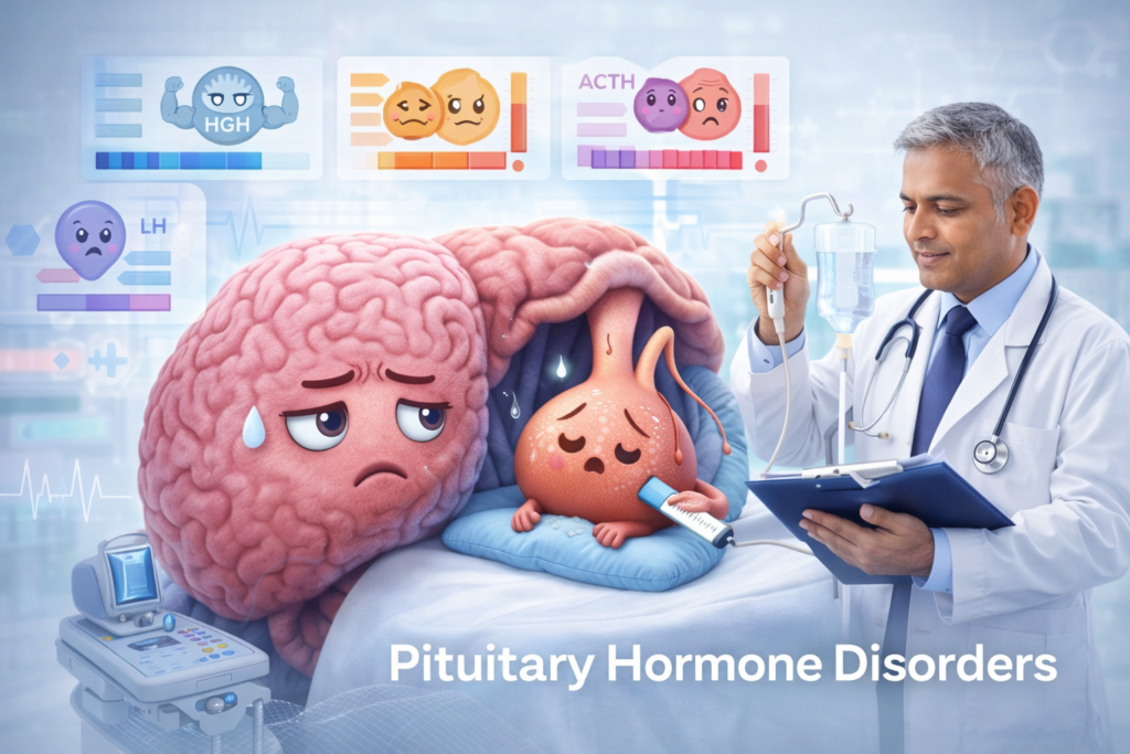 Our clinic provides expert diagnosis and treatment for pituitary disorders including hormone deficiency and excess hormone production. Patients undergo detailed hormonal evaluation and appropriate medical management.