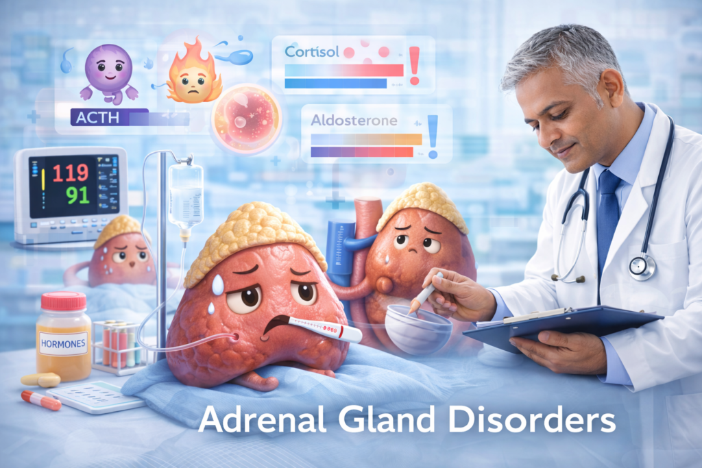 At our clinic, we provide comprehensive evaluation and management of adrenal disorders through clinical assessment and laboratory investigations. Treatment focuses on restoring hormonal balance and managing symptoms effectively.